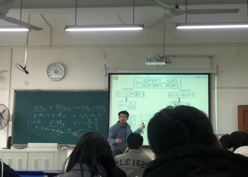 疫情期间,必赢官网既抓好疫情防控,又紧盯课堂教学质量评价,切实提升教育教学质量。2022年12月1日下午,学院领导刘庆言书记、王宗德院长、叶健副书记、龚霞副院长和教学秘书徐丽青走进课堂,听取青年教师刘书武博士为应化2002班讲授的《高分子化学》课程。
