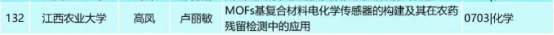 近日,江西省人民政府学位委员会办公室发布了《关于2023年江西省优秀博士硕士学位论文评审结果的公示》,必赢官网2020级化学专业硕士研究生高凤(导师:卢丽敏)的学位论文《MOFs基复合材料电化学传感器的构建及其在农药残留检测中的应用》获评2023年江西省优秀硕士学位论文。