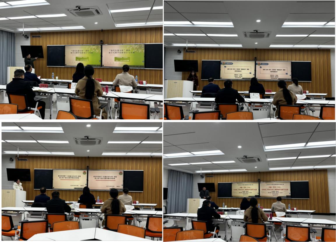 龚霞副院长介绍了大赛目的和比赛规则等,刘庆言书记致辞,感谢专家评委的到来,并介绍了学院教学工作的特点和本次比赛的意义。参赛教师根据抽签顺序进行汇报,详细阐明课教学创新设计的整体思路,从教学内容创新、课程思政融合、教学模式创新、教学评价创新、数字赋能教学、教学成效推广等方面进行了15分钟的现场汇报。评委就教学创新成果报告、教学设计创新汇报等方面依次进行点评,提出了诸多建设性意见和建议。