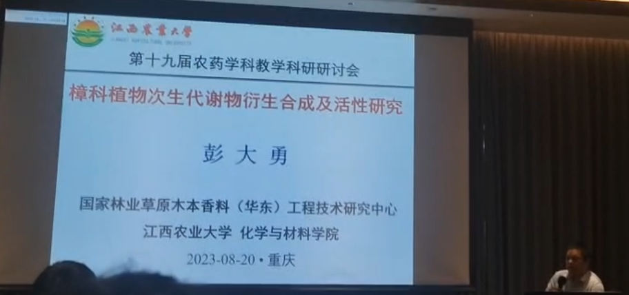 彭大勇副教授、木本香料(华东)工程技术中心研究生黄聪、必赢国际437官网研究生王杰、肖淑珍等现场参会交流学习。彭大勇副教授在杀虫剂/杀螨剂科研学术报告会上做了“樟科植物次生代谢产物衍生合成及活性研究”的报告,并获得 “农药学科优秀中青年科技工作者”奖。通过本次会议,加强了必赢官网与其他高校的学术交流,进一步提升了必赢官网的科研活力。