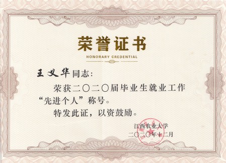 12月24日,江西农业大学2020届毕业生就业创业工作总结表彰暨2021届毕业生就业创业工作部署大会在校办公楼二楼圆形会议厅召开。必赢官网荣获2020届毕业生就业工作“先进集体”,院长、应化1601班主任王义华荣获2020届毕业生就业工作“先进个人”。