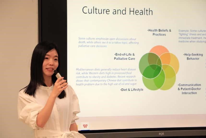 刘佳博士介绍了从语言和国际新闻与传播领域转向医学教育的职业与学术历程。通过多个案例探讨文化对健康观念的影响。在健康与国际关系方面,刘佳博士以中国的“健康丝绸之路”(HSR)为例,说明全球健康合作如何通过医疗援助、疫情应对和基础设施发展促进外交关系。同时她分析了疾病防治中的国际合作与文化冲突。当谈到跨学科研究与实践时,刘佳博士强调了语言在科研工作中的重要性,并提出跨学科研究的潜在方向,鼓励学生思考结合不同领域的课题。