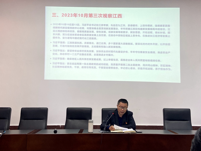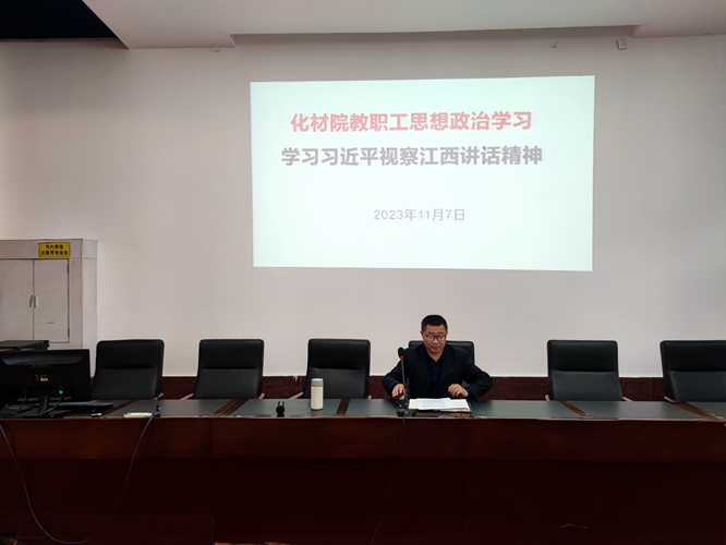 202311714:10,学院在致学楼阶梯报告厅召开学院教职工大会,开展了教职工11月份思想政治学习。院党委书记刘庆言带领全体教职工一同认真学习了习近平总书记考察江西重要讲话精神。