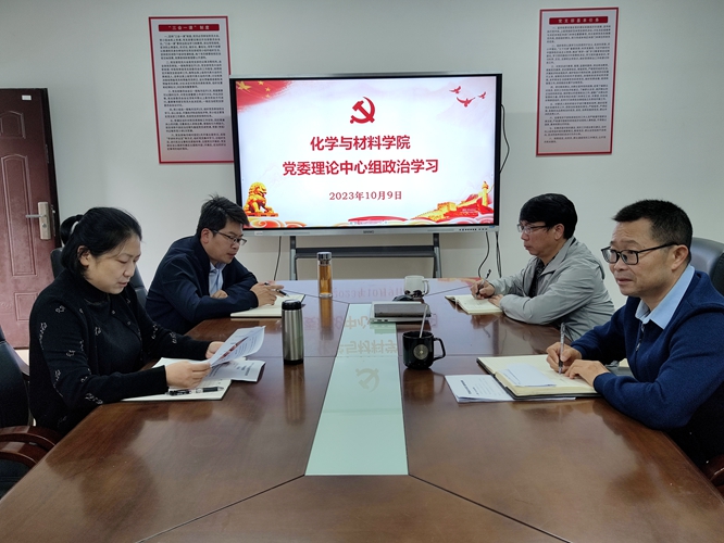 2023年10月9日8:30,学院党委召开理论中心组学习会,党委领导班子成员参会,会议由学院党委书记刘庆言主持。