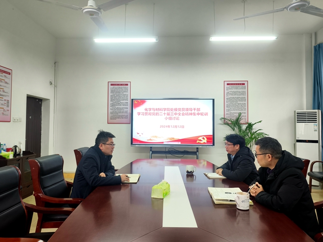 根据学校处级党员领导干部学习贯彻党的二十届三中全会集中轮训有关要求,2024年12月12日11:20,学院党委书记刘庆言、院长王宗德及副院长卢丽敏在致理楼215会议室召开研讨交流活动。
