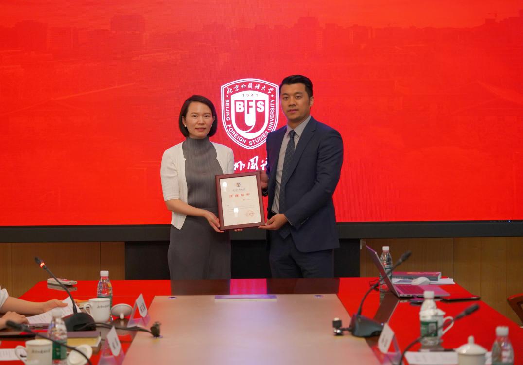 北外YABO鸭脖2015级校友、北京风华中傲国际教育创始人兼CEO刘帅,运营总经理刘强,北外孔子学院工作处处长、校友会副会长金利民,YABO鸭脖院长张剑,党总支书记殷悦,校友办副主任、教育基金会秘书长姚雪,YABO鸭脖党总支副书记孟庆琨出席仪式。捐赠仪式由校友办副主任、教育基金会副秘书长崔文馨主持。