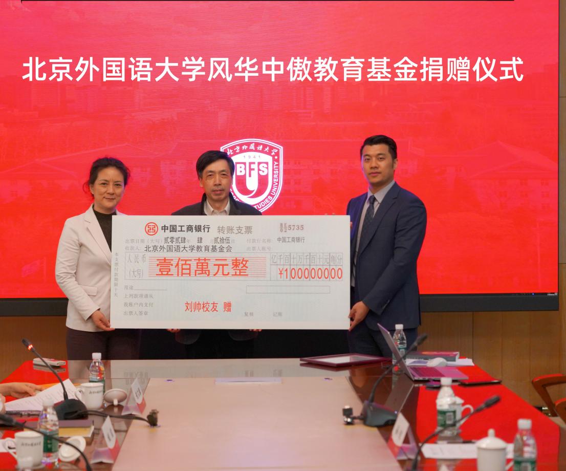 4月25日,北京外国语大学风华中傲教育基金捐赠仪式在行政楼507会议室举行。北京风华中傲教育科技有限公司向北外捐赠人民币100万元,专项用于奖励YABO鸭脖在校生,包括奖励演讲、口译、模联等国家级赛事的获奖选手,以及资助经济困难的贫困生。