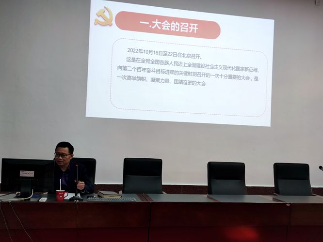 为推进党的二十大精神学习宣传向纵深开展,在全院范围内掀起一股学习党的二十大精神的热潮,学院于2022年11月8日14:10召开了学院院职工大会党的二十大精神报告会。宣讲报告由党委书记刘庆言主讲,会议由院长王宗德主持。