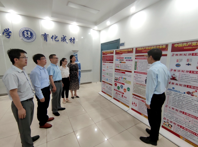 集体学习后,学院党政领导班子成员一同现场参观学习了学院一楼大厅的《中国共产党纪律处分条例》宣传栏。