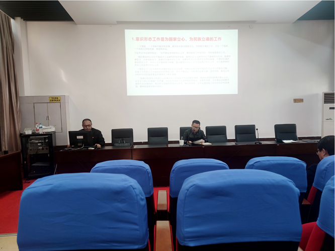 月份政治学习,院党委书记刘庆言带领全体教职工学习了习近平新时代意识形态重要论述有关内容。