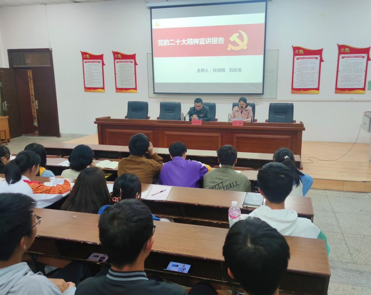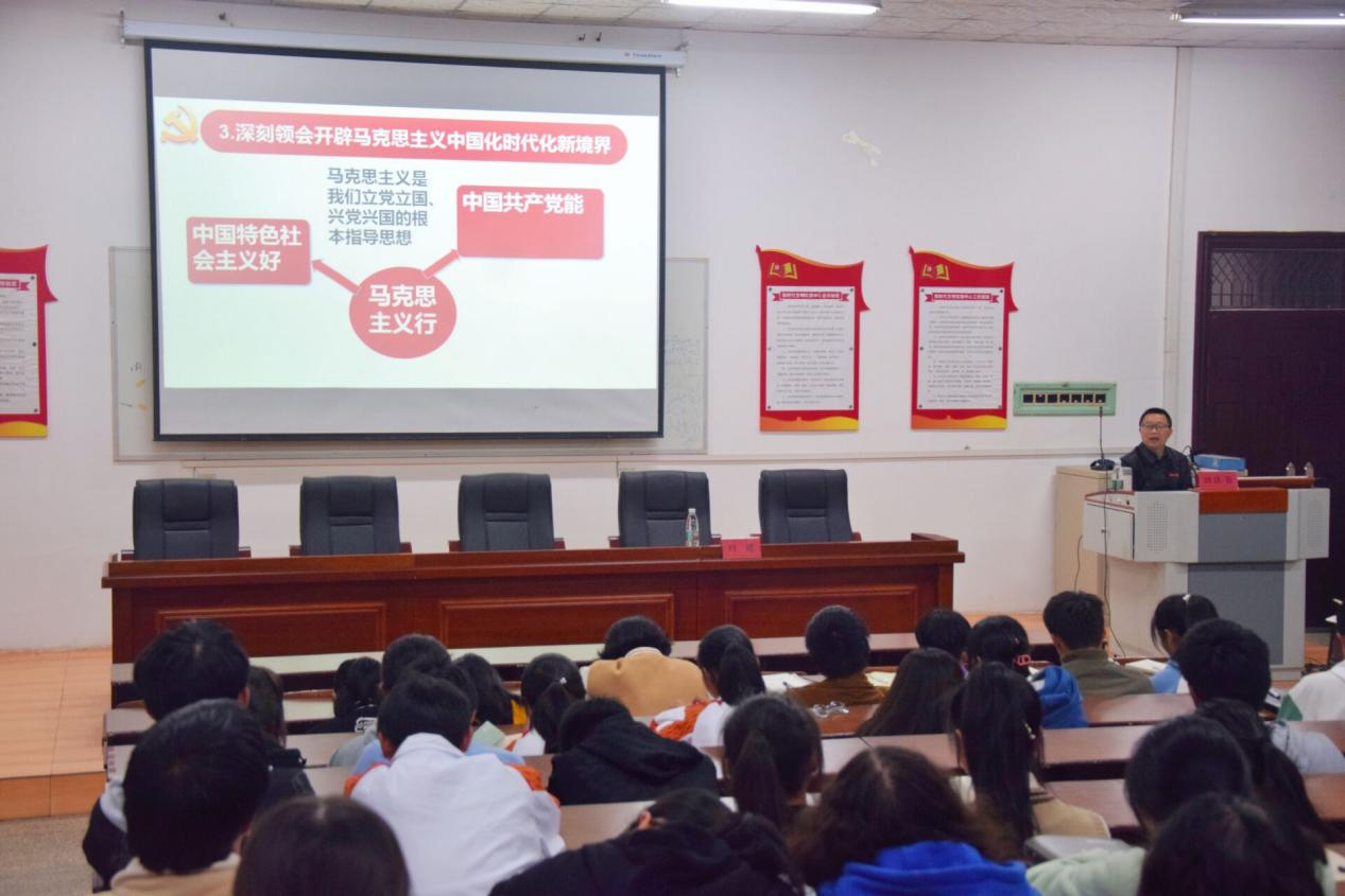 为深入学习宣传贯彻党的二十大精神,更好地推动党的二十大精神进校园、进班级、进课堂,同时扎实开展好新生入学教育、为新生上好专题党课,2022年11月4日晚上7点,必赢官网于一教惟义楼党校教室举办党的二十大精神宣讲报告会,报告会由学院党委书记刘庆言主讲。学院党委副书记叶健、辅导员及182名新生参加报告会。