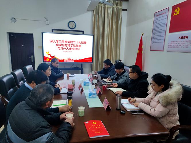 为深入学习贯彻党的二十大精神,2022113014:20,学院召开院党委与党外人士座谈会。学院党委领导、学院党外人士参会,会议由党委书记刘庆言主持。