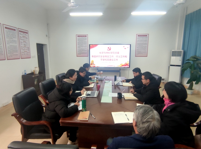 刘庆言作会议总结并强调,一是安全稳定关系到国泰民安、民生福祉、社会和谐和家庭幸福,是国家头等大事,是全社会的共同价值追求,是人民群众的核心诉求,为此党委要高度重视安全稳定、综治工作,切实维护好国家、社会和人民的核心利益,不负人民期待。二是新时代要坚持以习近平新时代中国特色社会主义思想为指导,坚持人民至上,坚持总体国家安全观,加强安全稳定和平安中国建设,为中国特色社会主义建设事业创造安全发展环境,营造凝心聚力氛围,奋力推进中国式现代化和中华民族伟大复兴事业。三是化材院要严格落实校党委、行政关于安全稳定、综治工作和平安校园建设工作的各项工作部署,树牢安全发展的底线思维,守好自己的门,管好自己的人,切实履行好安全稳定工作政治责任,带领师生做好安全稳定工作,确保师生生命财产安全,确保营造师生安心学习成长的氛围。