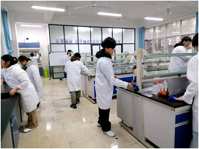 劳动教育活动以班级为单位,每个班分别安排负责老师,我支部张琳、付凌、蓝应东三位老师担任负责老师。劳动实践内容包括打扫学院致学楼和致理楼公共区域卫生和教学实验室卫生,以及实验仪器设备和实验器材整理摆放等。劳动教育活动旨在引导学生热爱劳动、尊重劳动,甘于奉献,激发同学们的专业学习热情和增强专业兴趣。同学们非常认真细致,任劳任怨,将实验室和公共区域打扫得干净整洁,为大家提供了清爽舒适的学习环境。