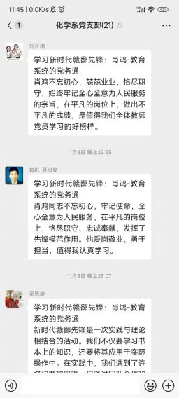 2024年11月7日,为深入学习榜样精神,提升党员思想政治觉悟,化学系教工党支部组织开展线上党日活动——学习“新时代赣鄱先锋”。
