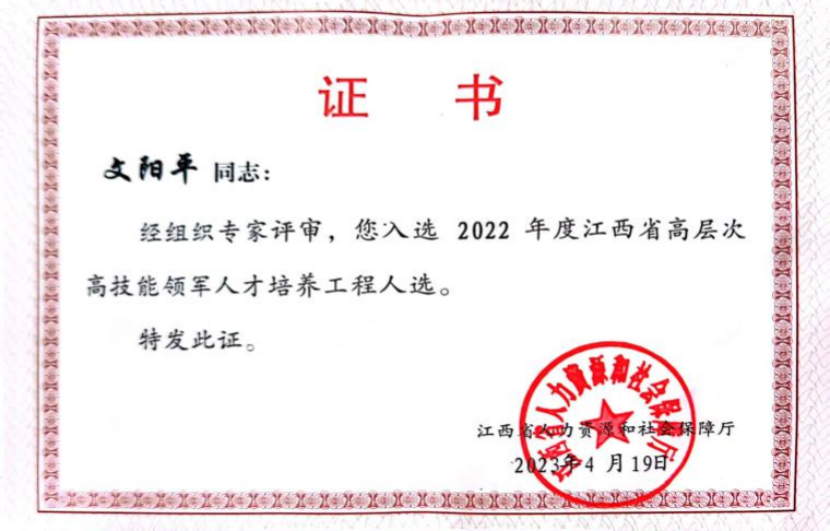 2023年7月,从江西省人力资源和社会保障厅传来喜讯,2022年度江西省高层次高技能领军人才培养工程(以下简称“双高工程”)人选名单正式公布,经个人申报、专家评审、社会公示等程序,材料与化工支部党员文阳平同志成功入选2022年度江西省“双高工程”人选,这是必赢官网高层次高技能领军人才培养的重大突破。