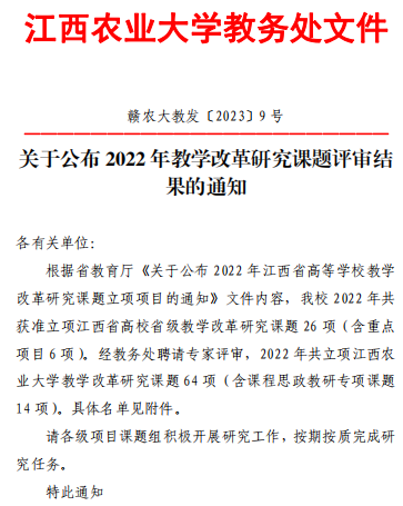 喜报:材料与化工支部获批4项江西农业大学教学改革研究课题