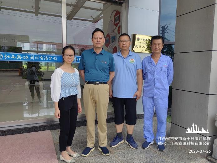 2023 年7月26日,为加强校企合作、推进“双百计划”创新团队项目进展和访企拓岗等工作,黄喜根和贺雪梅博士到江西鑫臻科技有限公司进行商议和研讨,科技副总徐达利针对目前存在的科研难点问题以及销售情况进行了介绍;双方就科技服务、合作研发、技术人员培训与培训职工能力提高等等主题充分发表意见,形成了一致认识,加快推进项目完成,并希望继续合作。