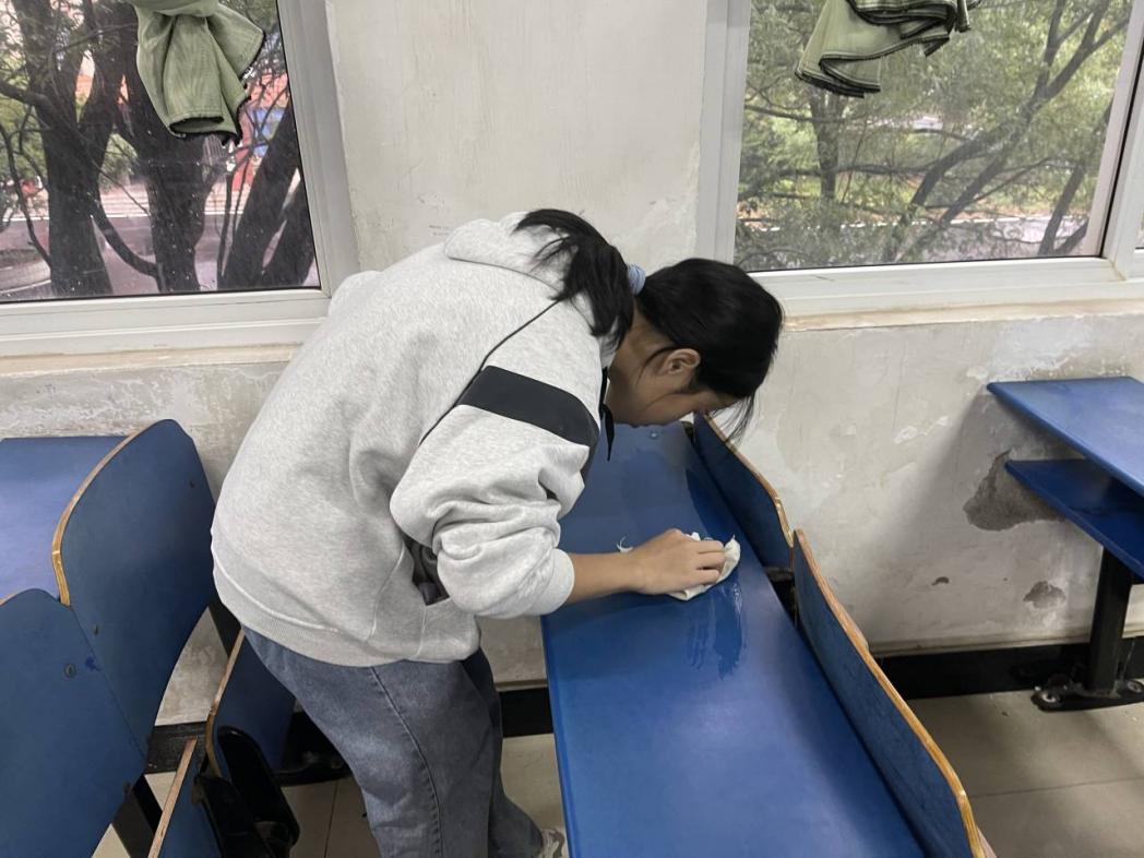 学院本科生党员根据自身所学知识,联合研究生党员成立“试验小组”,根据桌面残留笔迹的成分,在专业老师的指导下精心调配试剂、多次反复试验、优化改良配方直至确定清洁效果最好、残留物质最少、对人体无危害的最佳“除污”秘方。活动分为六个小组,党员们领取药品、抹布等清洁用品,通力合作、互相配合,认真清洁桌面的每一个角落,经过近三小时的共同努力,二教名达楼的桌面焕然一新。活动体现了学院学生党员“能吃苦、讲奉献、有担当”的优良作风,也为营造舒适的学习环境,为建设和谐、文明、美丽的校园奠定了基础。