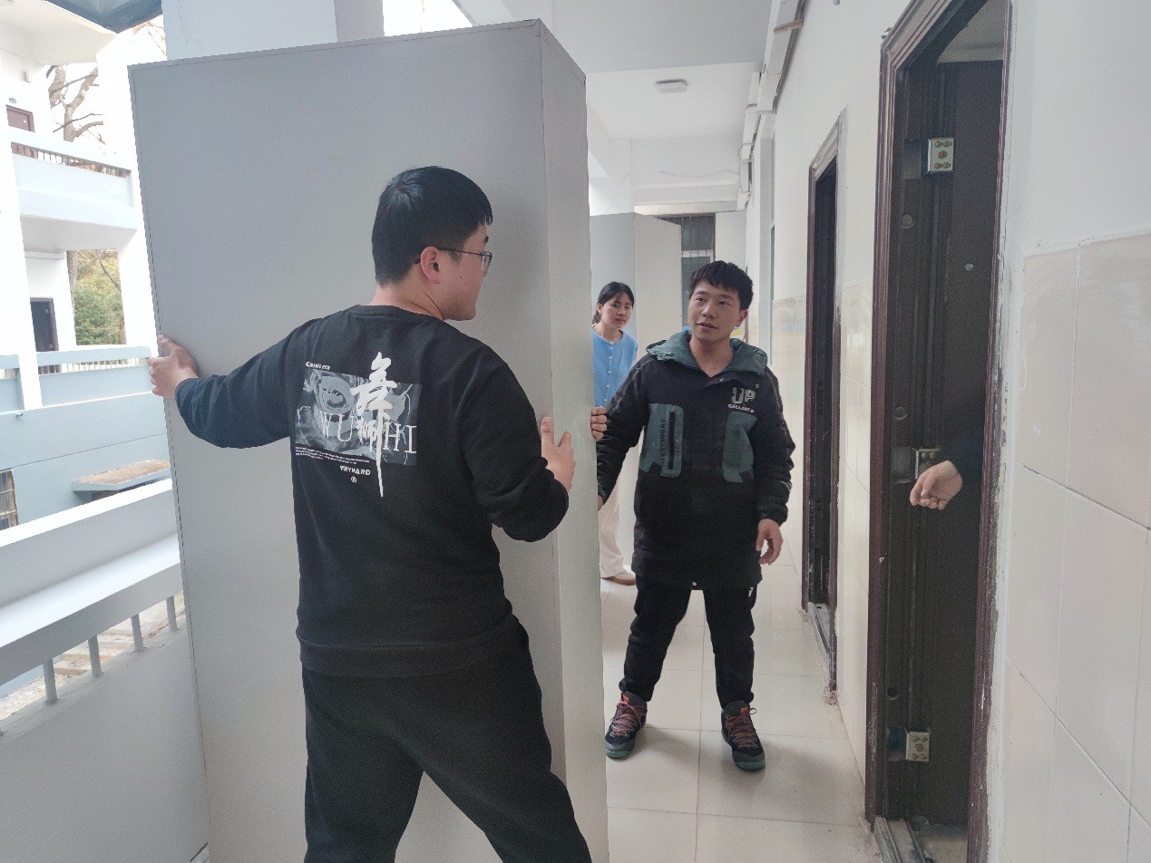 清扫地面、擦拭桌子、搬运桌子,志愿者们仔细地清扫学院楼南面的每一个角落,耐心地擦拭每张桌子和柜子,经过两批志愿者一天的努力,几个房间焕然一新、整洁有序。