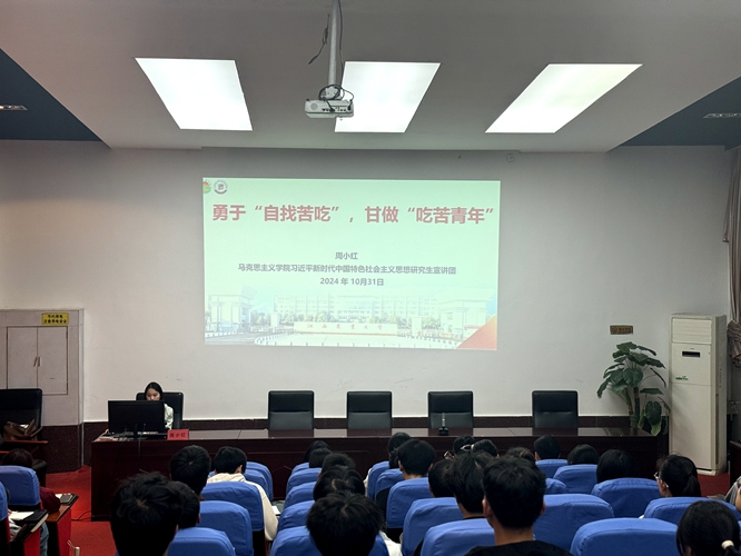 周小红以《勇于“自找苦吃”,甘做“吃苦青年”》为题,围绕“新时代青年人吃苦,吃的是什么苦”“新时代青年人为什么要‘自找苦吃’”“新时代青年人如何正确‘自找苦吃’”三个方面展开宣讲,用翔实的数据、鲜活的案例和丰富的内容,讲述了青年大学生应该如何涵养“自找苦吃”的精气神,激励广大青年大学生更好成长成才。