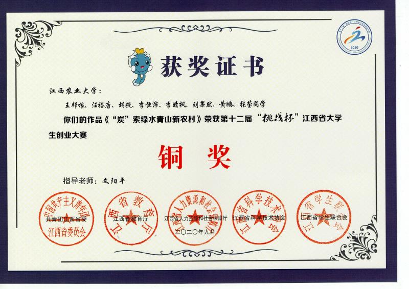 近日,由共青团江西省委、江西省教育厅、江西省人力资源和社会保障厅、江西省科学技术协会、江西省学生联合会共同主办的第十二届“挑战杯”江西省大学生创业大赛终审决赛闭幕式暨颁奖仪式在南昌大学落下帷幕。