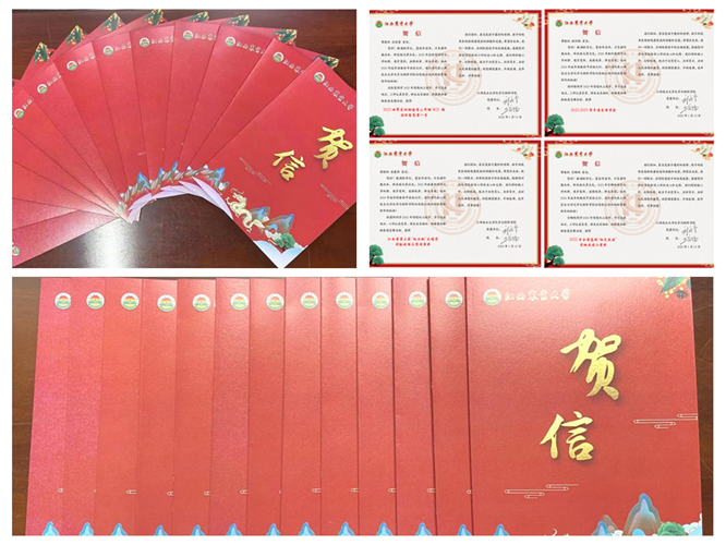 学院高度重视本次活动,根据学生2023年度优异表现精心撰写贺信内容,共寄出贺信74封,每一封贺信都承载着学院对学子们的殷切期望和美好祝愿,传递着家校共育的温暖与力量。贺信涵盖祝福祝贺、学生表现和未来展望等内容,学院衷心感谢学生家长对学校学院工作的关心和支持,热烈祝贺学生取得的成绩和收获,希望同家长一起进一步健全家校沟通平台,增进家校育人共识,深化家校育人机制,凝聚家校育人合力,共同助力学生成长成才。