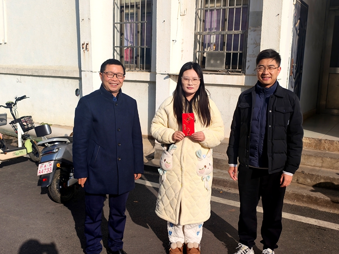 1月27日,农历腊月二十八,学院党委书记刘庆言、学生党总支书记彭玉萌及辅导员代表走访慰问寒假留校学生,代表学院送去新春祝福。