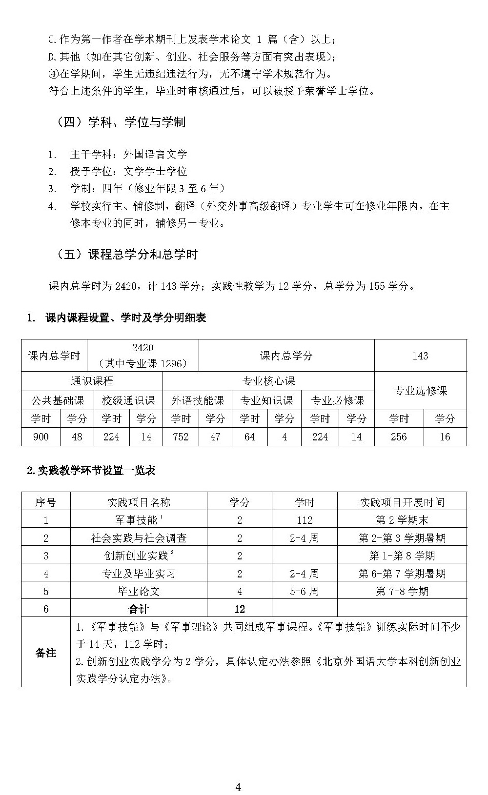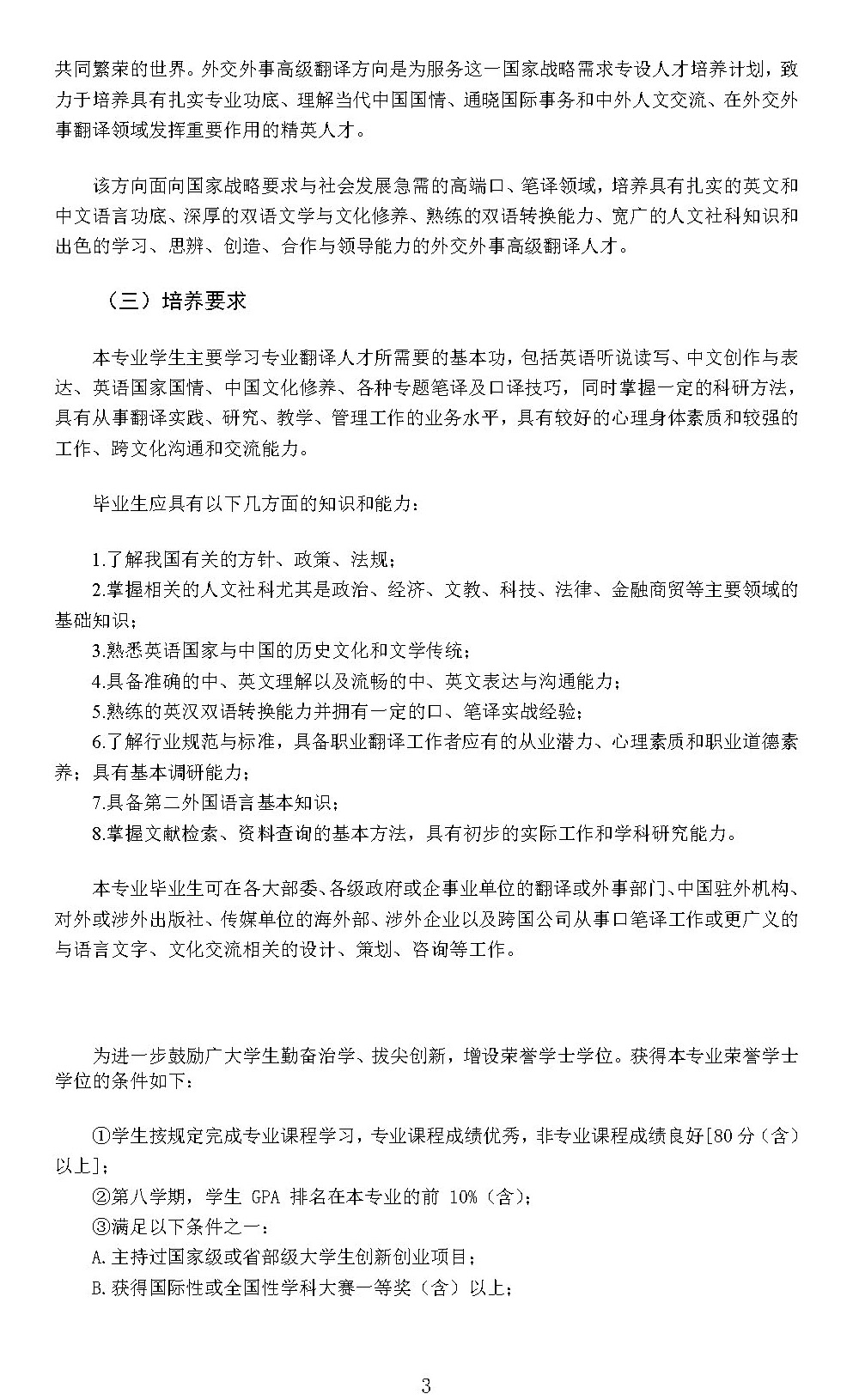 YABO鸭脖翻译(外交外事高级翻译)专业本科培养方案(2024)