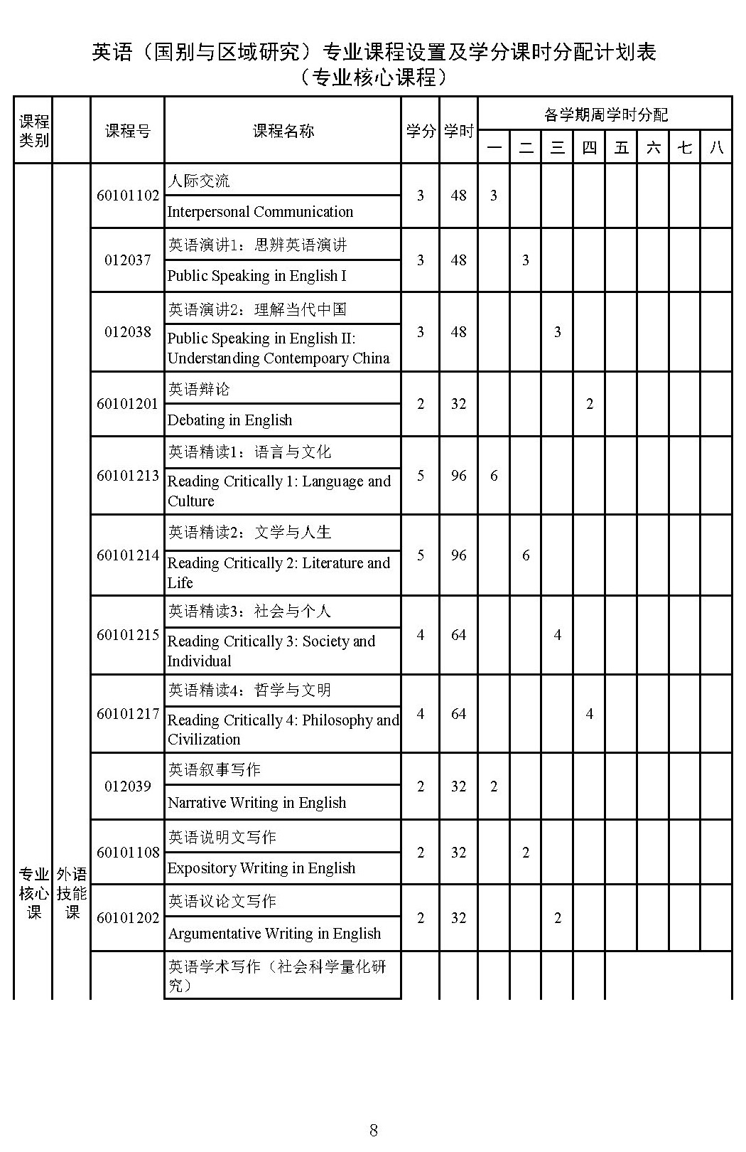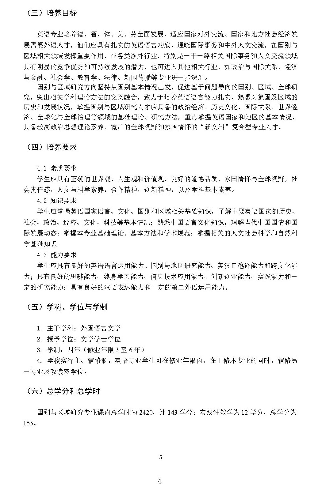 YABO鸭脖英语(国别与区域研究)专业本科培养方案(2024)