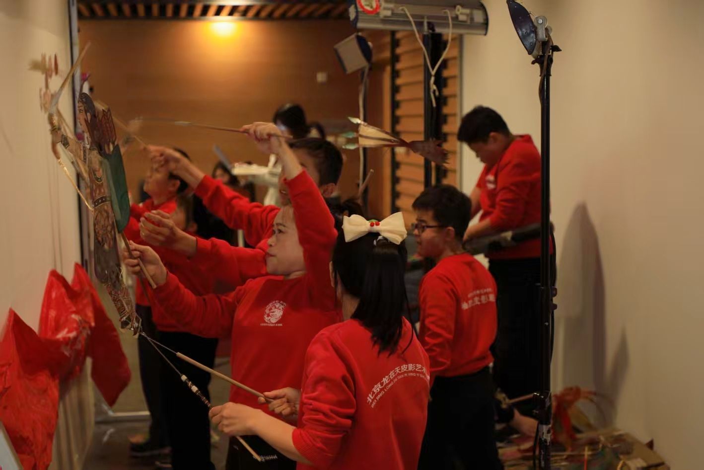 在表演环节,北京龙在天皮影艺术剧院带来了与北外YABO鸭脖合作创作的两部经典剧目《大闹天宫》与《嫦娥奔月》的英文配音版演出。幕布之上,悟空与嫦娥的形象在光影间跃动。纯正的英文旁白与唱腔与影人精准的动作、传统的配乐相得益彰,这种跨越语言障碍的生动演绎,让中美观众无需字幕便能沉浸于剧情之中。现场掌声不断,大家纷纷举起手机记录精彩瞬间,沉浸于皮影艺术的视觉盛宴中。