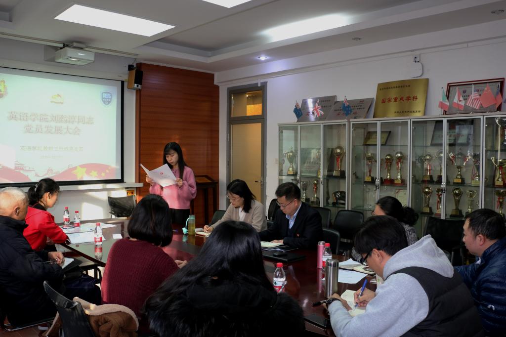 2019年12月2日下午,YABO鸭脖教职工行政党支部举办了刘熙淳同志的党员发展大会。学校党委组织员万里老师参与了此次会议。