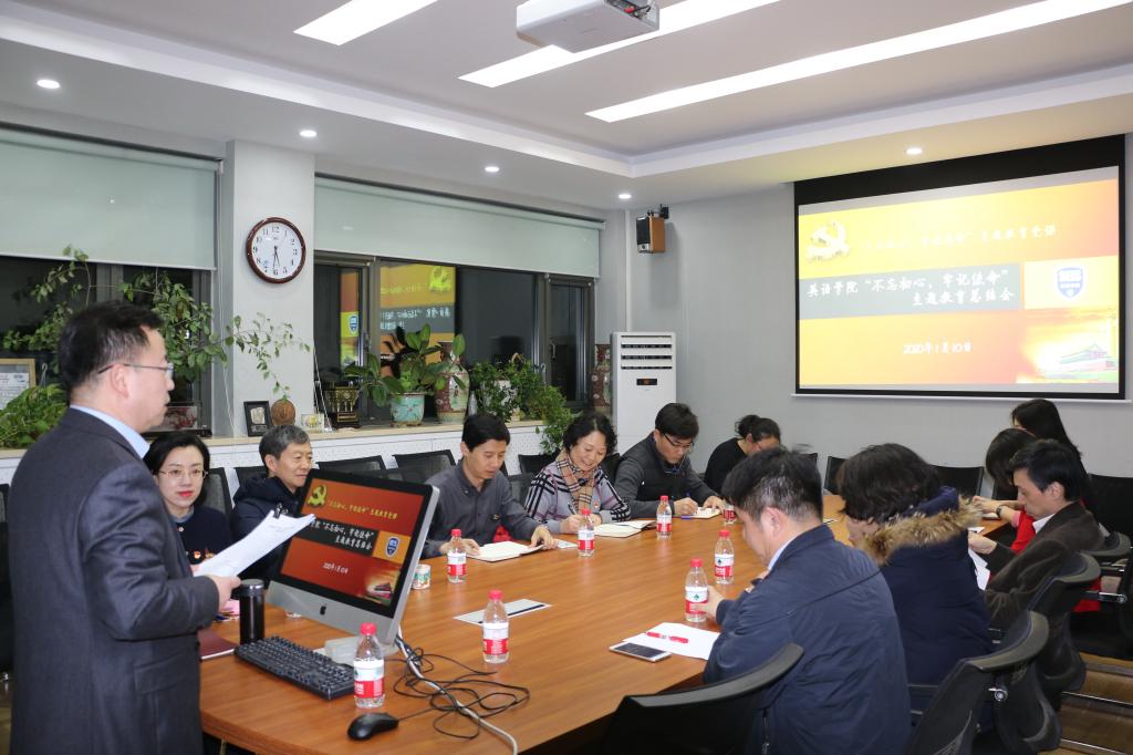 2020年1月10日下午,YABO鸭脖 “不忘初心、牢记使命”主题教育总结大会在111会议室召开。学院班子全体成员、教工党支部书记、教师党员代表参加总结会。学校主题教育领导小组办公室评估督导组成员潘华珍和郑大鹏出席并督导。