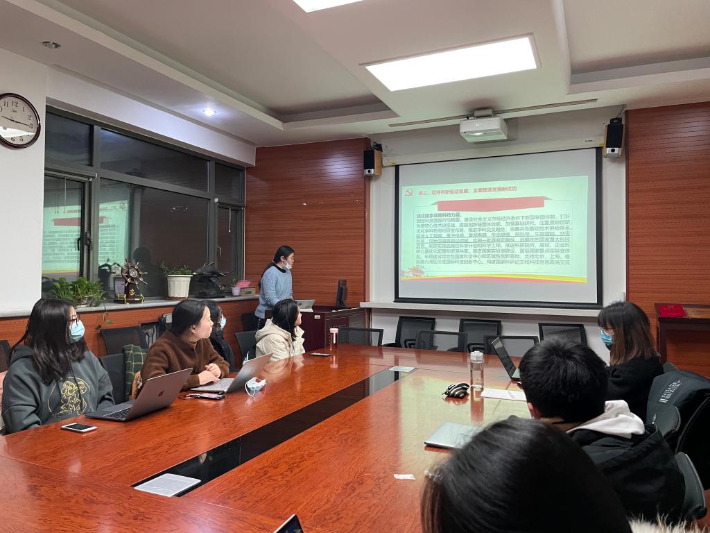在支部宣传委员邹琪琪同志的带领下,支部党员从经济、科技、教育、文化、环保五个方面,回顾了全党全社会在“十三五”期间的努力与成就,并重点学习了《中共中央关于制定国民经济和社会发展第十四个五年规划和二〇三五年远景目标的建议》。