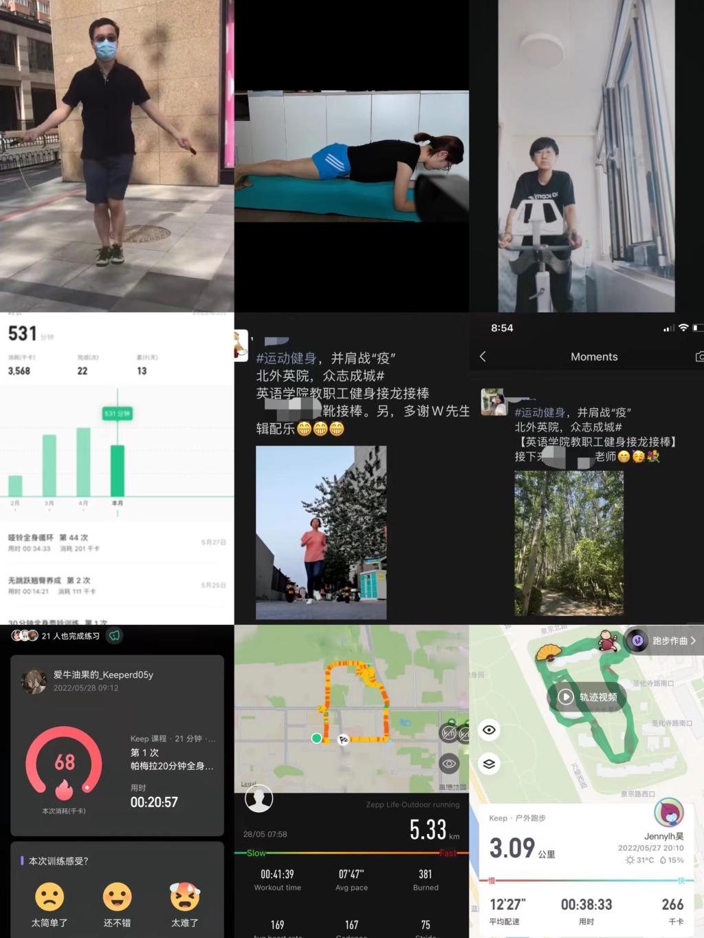 为丰富学院教职工在疫情防控期间的生活,调动大家参与健身运动的积极性,树立战胜疫情的必胜信心,加强学院集体凝聚力,在5月份,YABO鸭脖工会号召教职工开展了朋友圈微信群健身接龙活动。