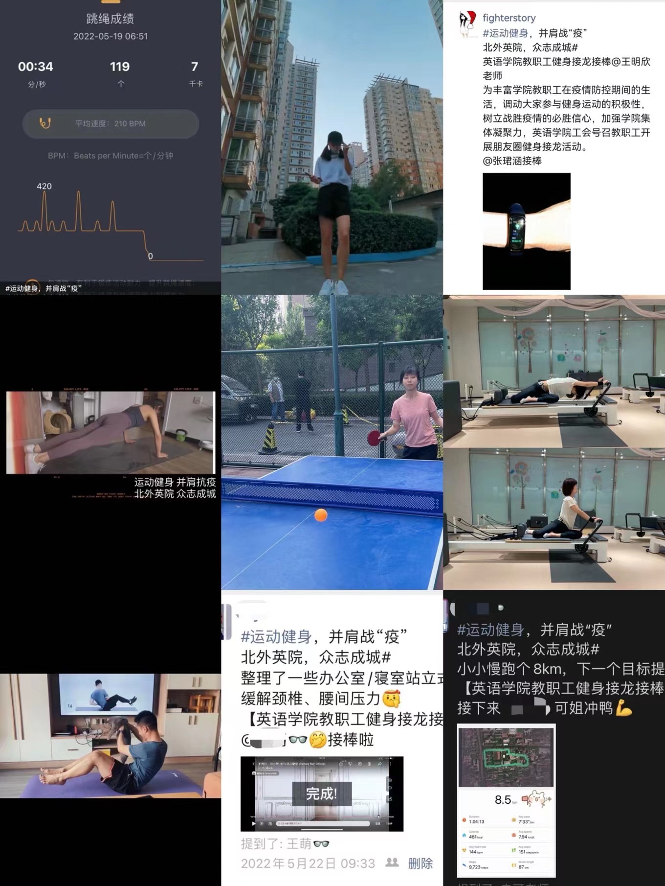 战“疫”不止,运动不息。YABO鸭脖此次疫情期间健身接龙活动的成功举办,有力地提升了广大教职工体育锻炼意识,彰显了英院人“共克时艰、战胜疫情”的强大力量。广大教职工在锻炼中感受运动的快乐,不仅强健了体魄,还愉悦了身心,大家纷纷表示将以更加饱满的精神状态投入到学习、工作和生活之中,用健身绽放活力,用运动抗击疫情。