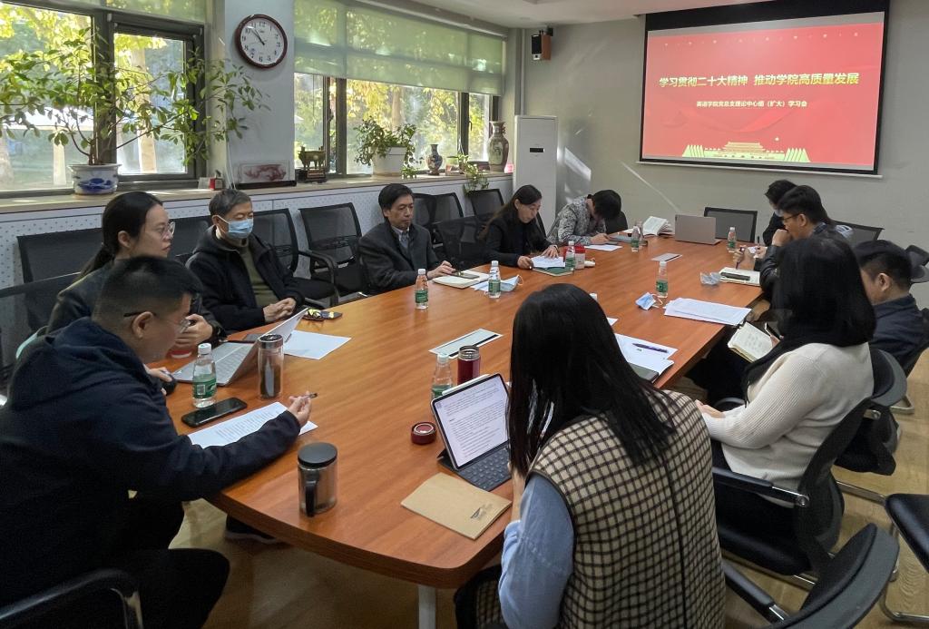 王明欣谈到,党的二十大报告将“实施科教兴国战略,强化现代化建设人才支撑”单独列出,把教育、科技、人才提到“全面建设社会主义现代化国家的基础性、战略性支撑”的重要地位,全体同志要把思想和行动统一到二十大精神上来,以更高的标准、更严的要求、更实的举措抓好学院的学科建设、人才培养,为建设中国式教育现代化、全面推进中华民族伟大复兴做出贡献。王明欣指出,新时期学院建设发展要以国家战略需求为导向,努力实现高质量人才培养、高水平科学研究、高效能社会服务,为加快建设中国式现代化提供有力支撑;必须心怀“国之大者”,坚持把立德树人作为教育的根本任务,培根铸魂,培养有家国情怀、国际视野、专业本领的复合型人才;不断加强基层党组织的政治功能和组织功能,团结带领全体教职员工,在新征程前进路上踔厉奋发。