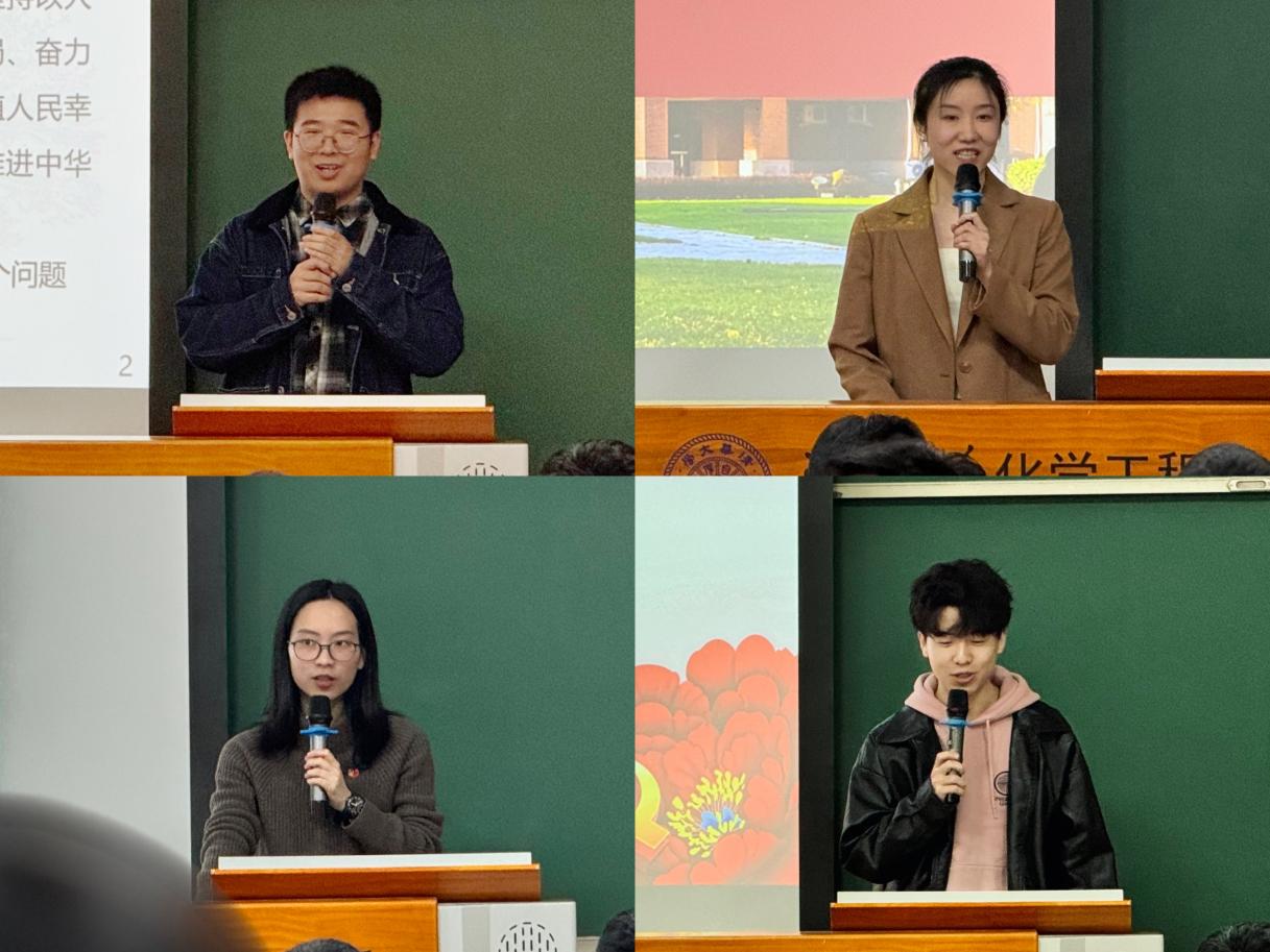 在理论学习环节,按照“化育英材”的顺序,清华大学化学工程系欧宇、北京外国语大学国际教育学院王亚玲、YABO鸭脖陈钇均、清华大学材料学院李鑫四位同学依次发言,他们结合自身专业背景,介绍了本院系与本学科的概况,分享了本学科为服务教育强国建设的可为与所为,阐释不同专业背景的青年学生如何为教育强国建设贡献青春力量。
