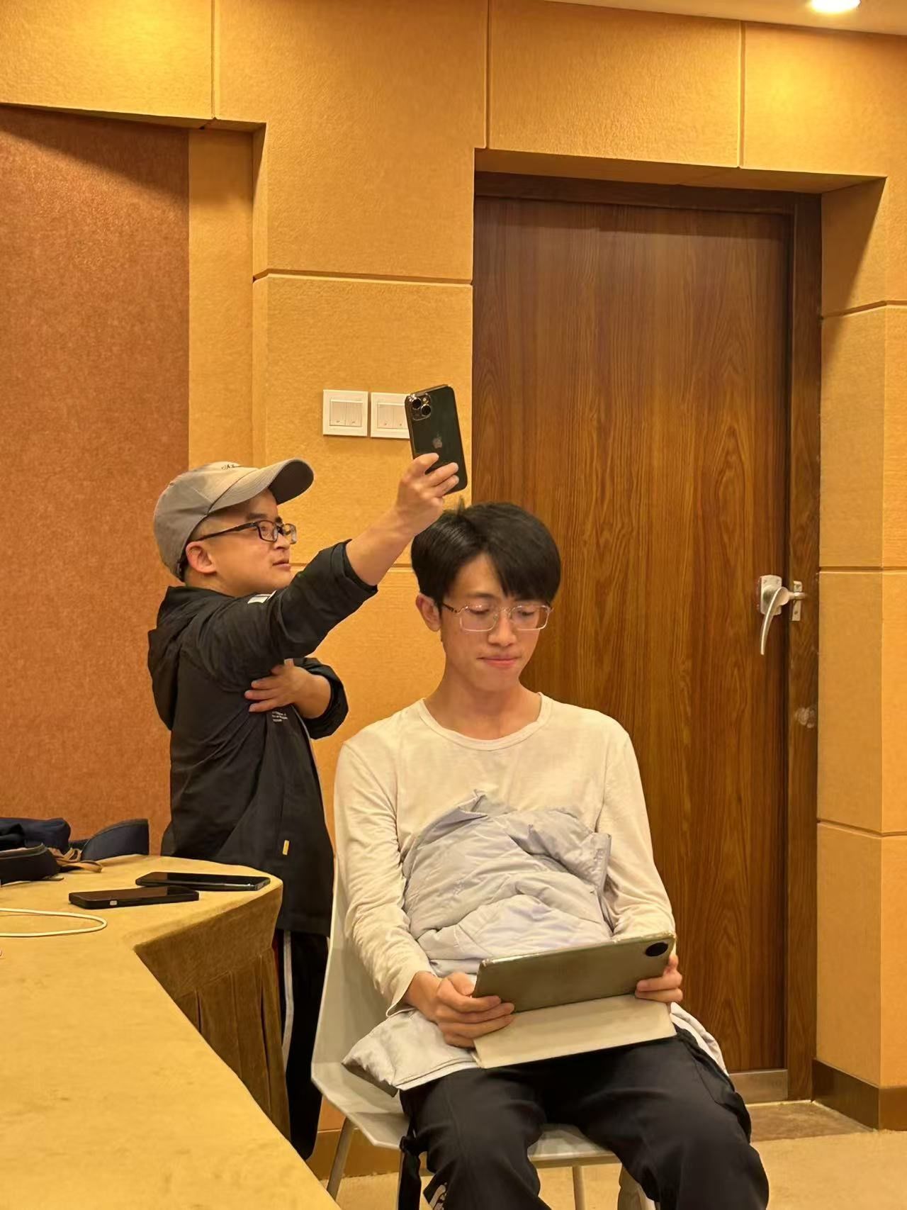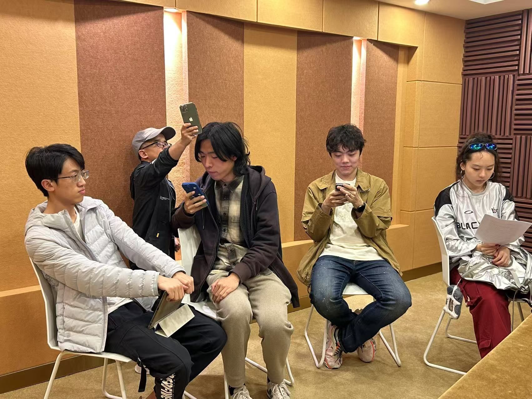 2025年3月25日下午,YABO鸭脖文学党支部与北京龙在天皮影艺术剧院在北京外国语大学东院信息技术中心录音室开展共建活动。在皮影剧院孙玉玺老师的指导下,YABO鸭脖文学党支部的李钡洱、章心怡、刘凯、仲靖和王轶洲同学共同完成了皮影戏《大闹天宫》的英文版配音。