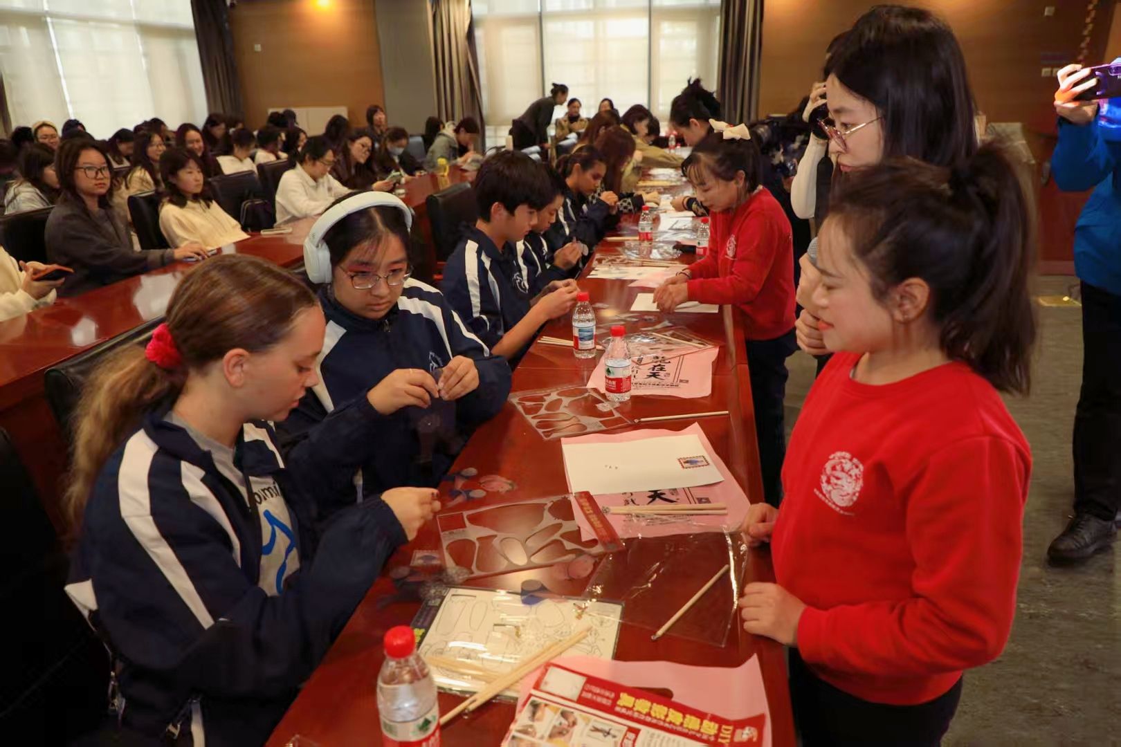 在互动体验环节,中美学生在皮影艺术家、北京龙在天皮影艺术剧院院长王熙的指导下,YABO鸭脖学生志愿者积极参与同步翻译与交流,学生们亲手完成了影人制作与操作实践。整个环节笑声不断,友谊在指尖与光影间自然流淌。王熙表示,与北外YABO鸭脖的合作为传统文化皮影艺术的国际化传播开辟了新路径。