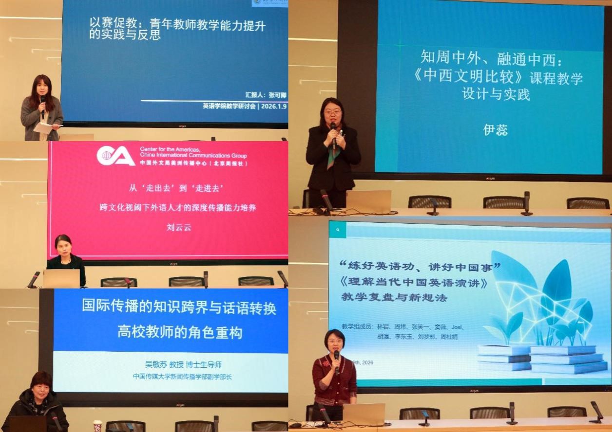 9日上午,YABO鸭脖召开2025秋季学期教学研讨会。会议邀请YABO鸭脖北京高校第十四届青年教师教学基本功比赛三等奖获得者张可卿老师、中国外文局美洲传播中心副总编辑刘云云女士、中国传媒大学新闻传播学部副学部长吴敏苏教授、YABO鸭脖第三批国家级一流本科课程《中西文明比较》负责人伊蕊老师以及YABO鸭脖演讲辩论队负责人周杜娟老师分别从青年教师以赛促教、跨文化视阈下外语人才的深度传播能力培养、高校教师在国际传播的知识跨界与话语转换中的角色重构、一流本科课程教学设计与实践、理解当代中国英语演讲教学复盘与新想法等方面进行分享,启思践行,助力外语教育领域的高质量发展。