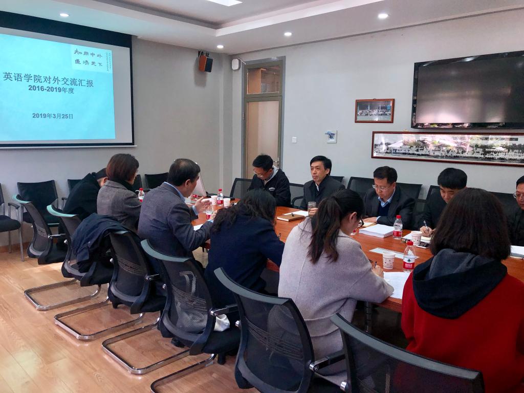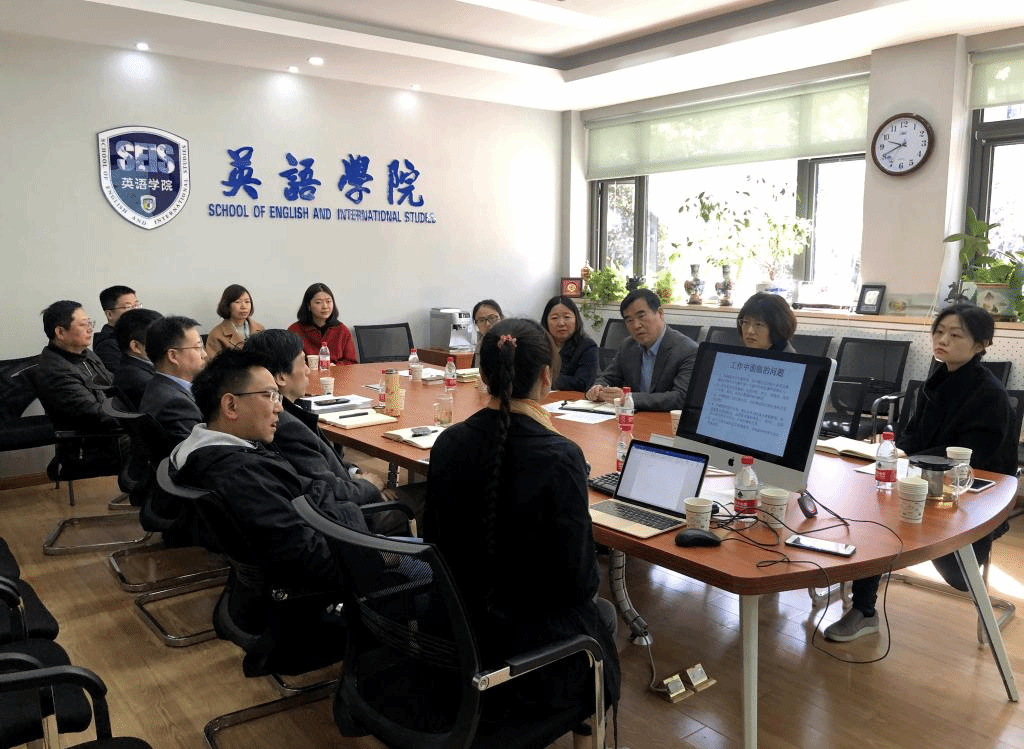 YABO鸭脖国际交流主管副院长谢韬代表学院就相关工作做以简要汇报。汇报从我院国际交流理念及措施入手,分别介绍了YABO鸭脖海外合作项目、来华留学生项目、教师出国进修、海外专家聘请及外事活动等情况,最后提出了学院现工作中面临的几点问题。与会人员就相关问题进行了深度探讨,包括如何解决留学生学籍管理、系统数据统计问题,外籍教师工资及国民化待遇问题,学院相关工作安排等。随后,YABO鸭脖院长张剑、党总支书记路兴、研究生教学主管副院长王展鹏、翻译方向负责人吴文安、本科教学主管赵冬等人也分别简述了学院目前相关工作情况及问题。