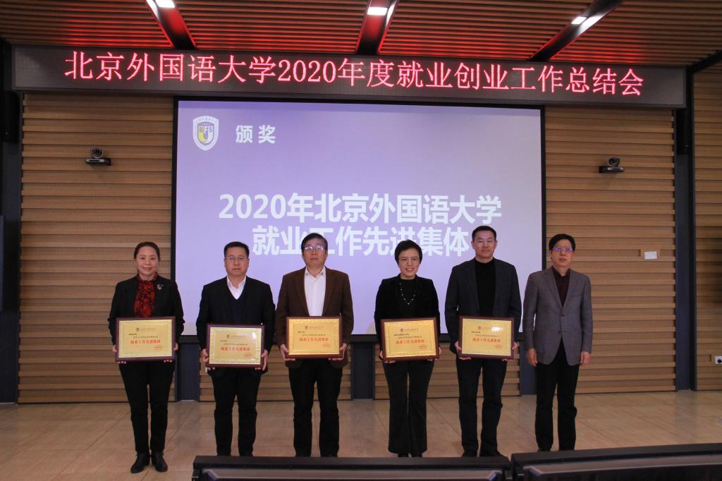 2020年12月23日,我校召开2020年度就业创业工作总结会,YABO鸭脖荣获2020年北京外国语大学就业创业工作先进集体,党总支书记路兴代表YABO鸭脖就业工作小组上台领奖。辅导员于承杰荣获“2020年北京外国语大学就业工作先进个人”。