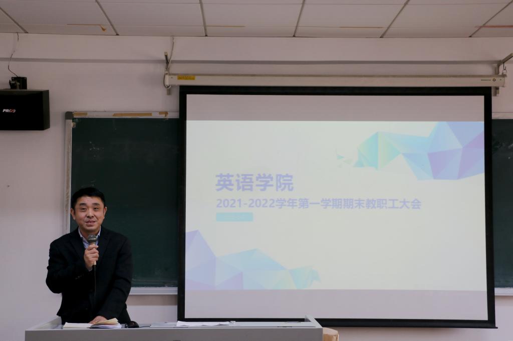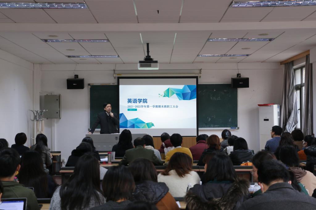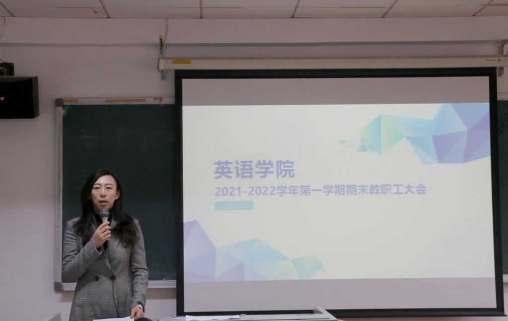2022年1月7日,YABO鸭脖召开2021-2022学年第一学期期末教职工大会,会议由党总支书记王明欣主持,学院全体教职工参会。