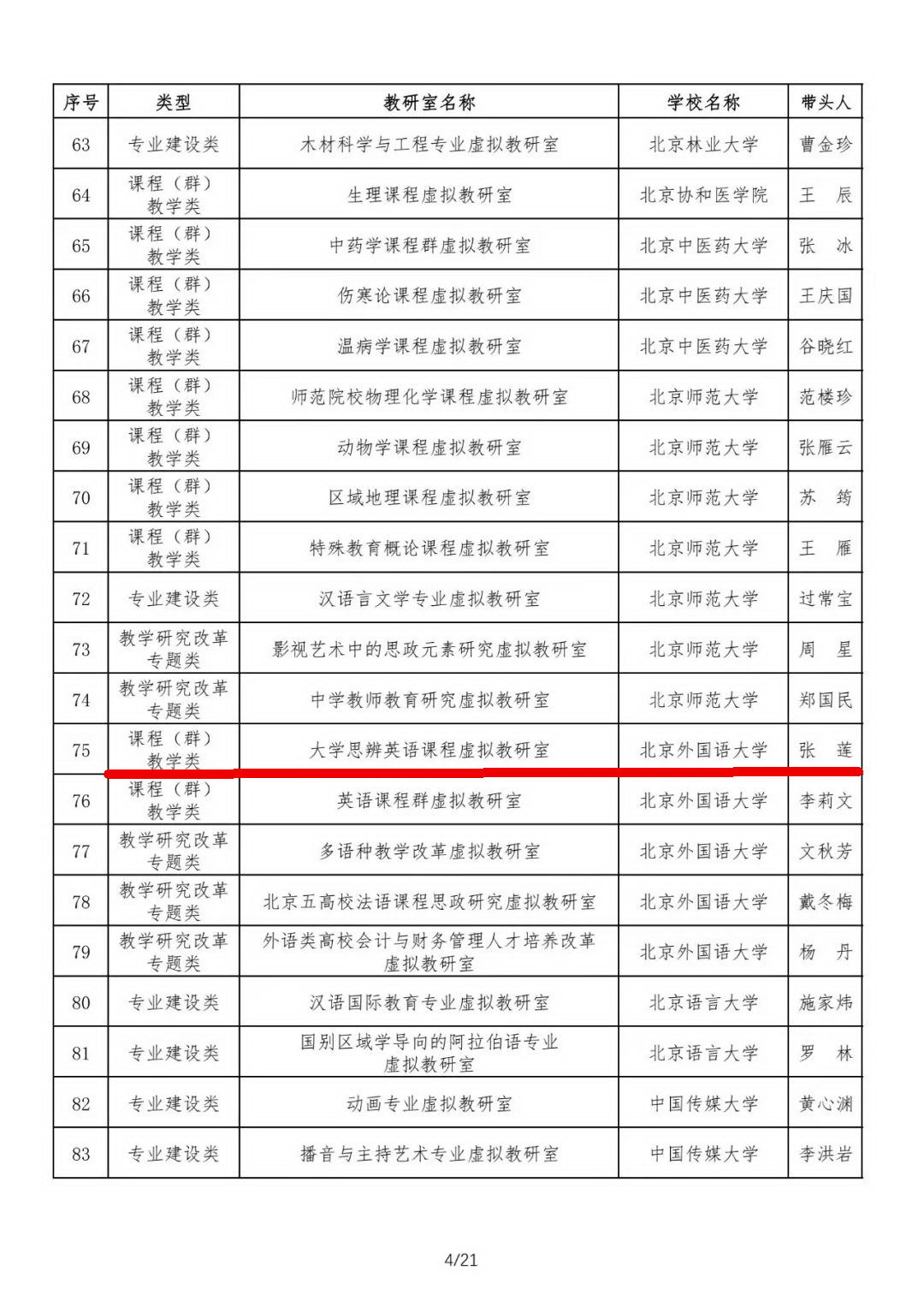 “大学思辨英语虚拟教研室(以下称‘教研室’)”是以YABO鸭脖专业核心课教研室为实体基础,由全国10所成员校为核心,20所高校为合作校,近500所高校的英语专业教学团队开放式参与,协同共建的全国性基层教研组织与教师发展共同体。教研室利用信息技术在全国范围开展跨校、跨地域常态化教学研讨,引领教改,引导教师回归教学、研究教学,全面提升教育教学能力。教研室团队成员包括50多人。带头人为国家“万人计划”教学名师(2019)、教育部课程思政示范课程负责人/名师(2021)YABO鸭脖副院长张莲教授。