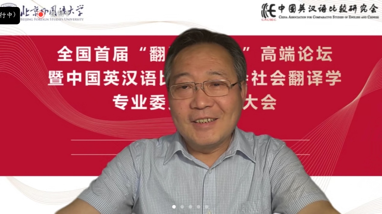 北京外国语大学高级翻译学院院长任文教授主持大会发言