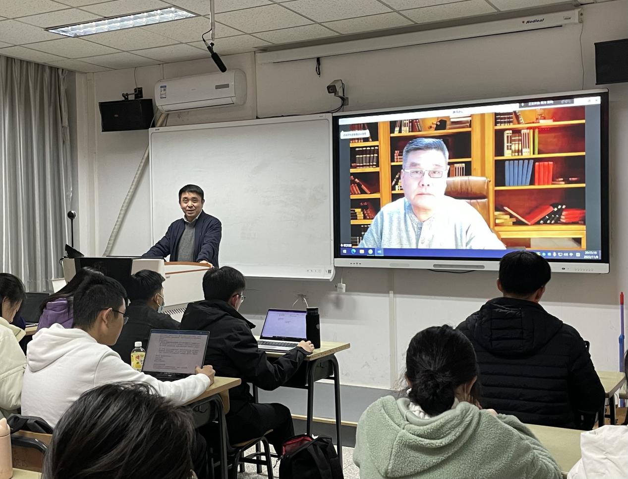 随后,王展鹏教授对崔洪建博士的精彩讲座表示感谢,认为俄乌冲突将对欧美关系产生深远的影响,其复杂性和长期性值得同学们持续关注和深入思考。在问答环节,崔洪建博士回答了线上、线下师生提出一系列问题。此次讲座以线上线下相结合的方式举行,共有百余名师生参加,为师生们思考和研究当下的热点问题带来了新的启发。