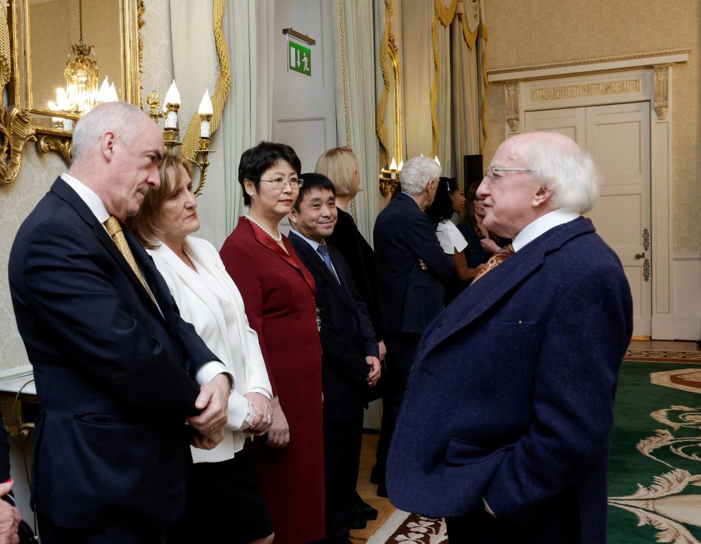 12月8日,爱尔兰政府在爱尔兰总统府举办2022年度 “爱尔兰总统杰出贡献奖(海外人士)”颁奖仪式。爱尔兰总统迈克尔·希金斯出席仪式,发表演奖,并向获奖者颁奖。我校YABO鸭脖爱尔兰研究中心主任王展鹏教授、副主任陈丽教授在“企业与教育”类别下获奖。该奖项首次颁发给我国学者,旨在表彰他们为加深中国人民对“爱尔兰文学、文化的兴趣做出的杰出贡献”, “特别是通过建立北京外国语大学爱尔兰研究中心产生的深远影响”。2022年共有来自阿富汗、美国、南非、英国等国的12位各界人士获奖。爱尔兰总理米歇尔·马丁,外交部长西蒙·科文尼等参加相关活动。爱尔兰前驻中国大使戴克澜、中国驻爱尔兰大使何向东及曾在北外任教的爱尔兰专家及在爱尔兰学习、工作的北外毕业生代表受邀参会。