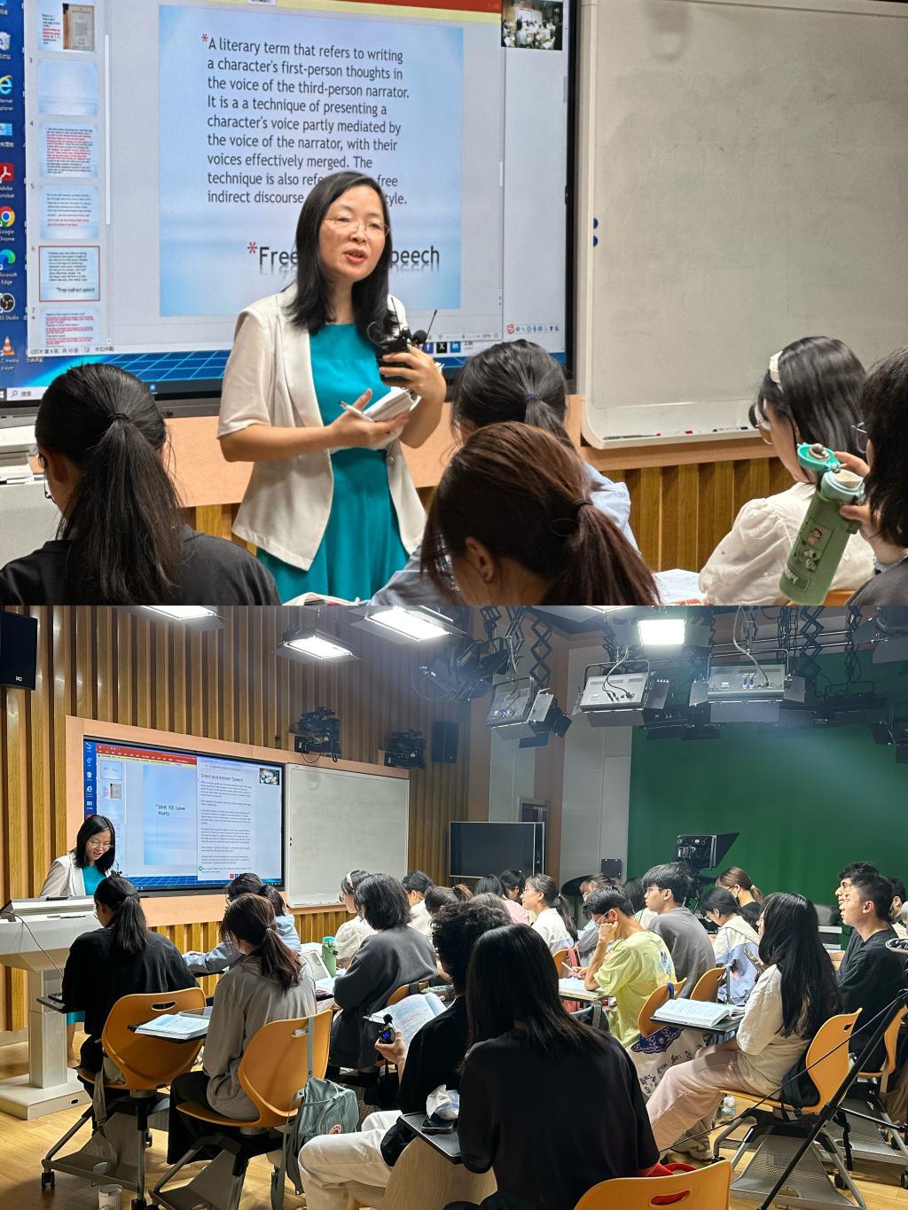 在15日进行的说课部分,申昌英聚焦《大学思辨英语教程精读2:文学与人生》教学中预习及课堂展示与学生自主学习、思辨力和创造力培养之间的紧密关系,深度分享了自己多年来这些活动安排的实践、案例、反思和调整。她认为,在以学生为中心的课堂内外,教师应注重训练学生预习时主动提问、提好问题、并依据文本分析和推理自我尝试回答问题的能力,努力培养同学间互相支持、相互启发和促进的学习共同体。除此之外,她特别介绍了本学期课堂教学中在形式和内容上做的调整,即鼓励创意、反向及多角度思维、有效合作等。随后,申老师与参加活动的众位老师进行了互动交流,热心回答了老师们的提问。老师们对申老师兢兢业业躬耕不已的敬业精神均表示敬佩,并表示深受启发,获益匪浅。