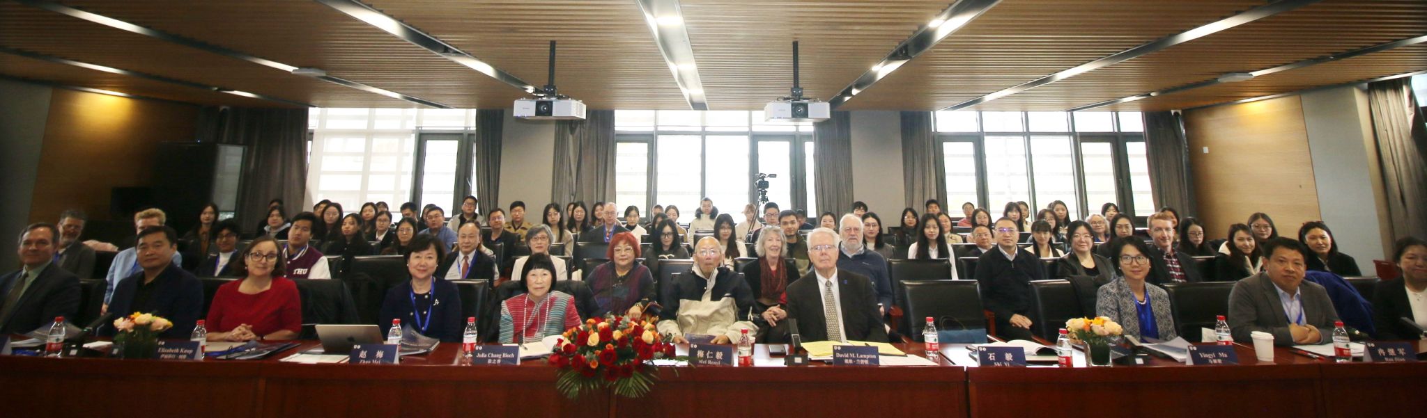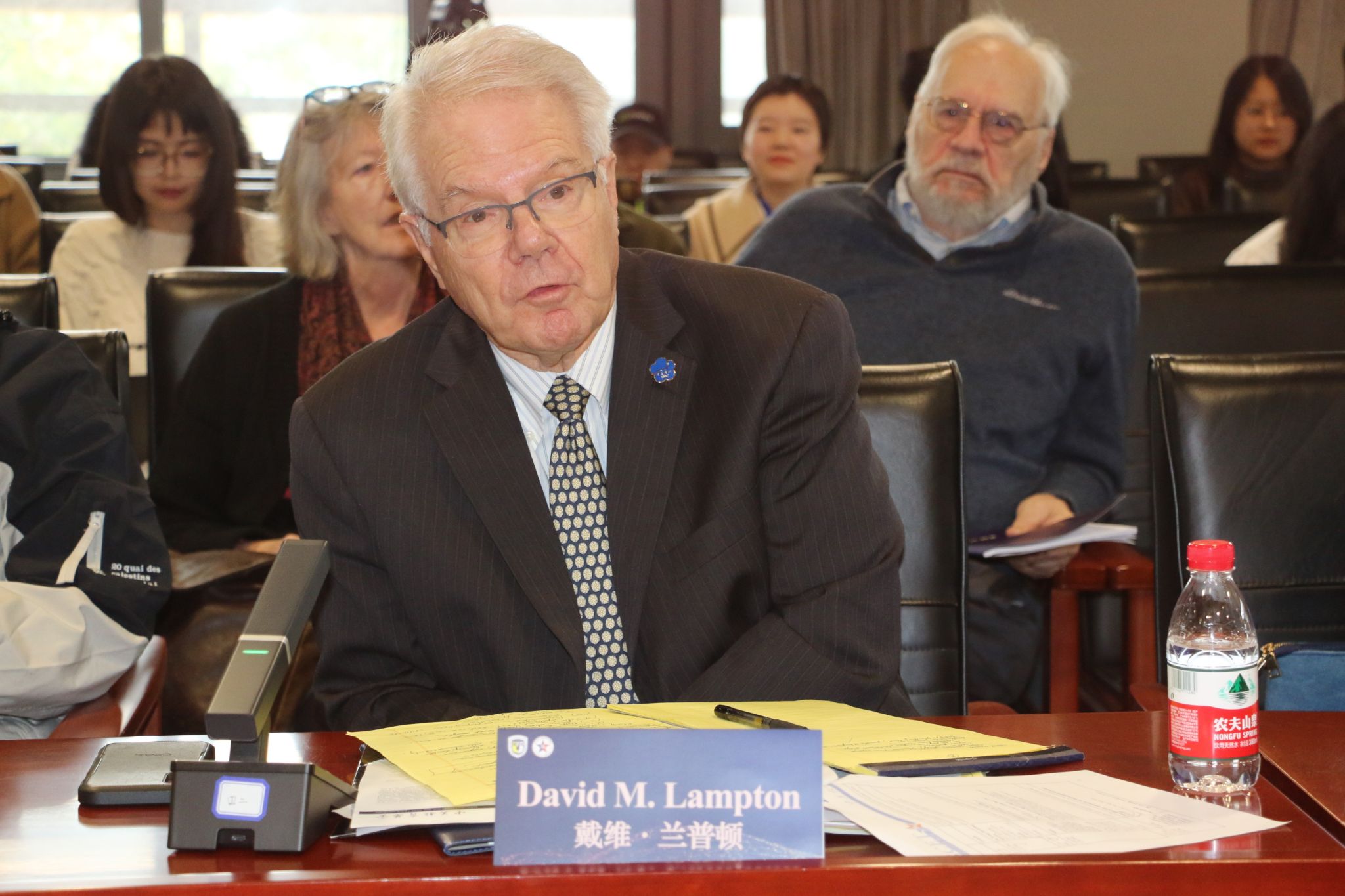 研讨会第一场主旨发言由北外教务处处长、美国研究中心李莉文教授主持。约翰斯·霍普金斯大学名誉教授戴维·兰普顿(David M. Lampton)、国防科技大学外国语学院美国研究中心主任王波教授、美国卡特中心“中国焦点”及宾夕法尼亚大学美中关系未来项目高级顾问伊丽莎白·纳普(Elizabeth Knup)分别做了题为“Living U.S.-China Relations: From Cold War to Cold War”、“People of Paradox: The Impact upon US-China Relations and Some Suggestions”、“Addressing Global Challenges: U.S.-China Civil Society Cooperation in an Era of Geopolitical”的精彩发言。第二场主旨发言由外交学院英语系主任冉继军教授主持。北外美国研究中心主任付美榕教授、雪城大学教授兼研究生项目主任,布鲁金斯研究所高级研究员马颖毅教授、外交学院美国研究中心主任石毅教授,分别做了题为“Stranded in the Cold War: a Psycho-historical Analysis of the Life Course of the Core Members of Chinese Scientific Workers’ Association in USA”、“Chinese Students in American Higher Education”、“Educational Exchanges Between China & US: Challenges”的精彩发言。 第三场主旨发言由中美教育基金会执行董事卢晓玫(Rosie Levine)主持。美国伍德罗威尔逊国际学者中心基辛格中美关系研究所主任罗伯特·戴博(Robert Daly)和北京外国语大学国际关系学院院长谢韬教授分别做了题为“Implications of the 2024 Elections on U.S. China Relations”和“Democratic backsliding and America’s declining Greatness”的精彩发言。